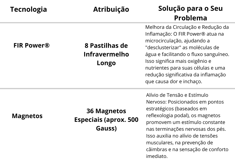 O Resultado: Seus pés recebem uma massagem sutil e constante, sua circulação é ativada e a dor é combatida de dentro para fora, a cada passo.